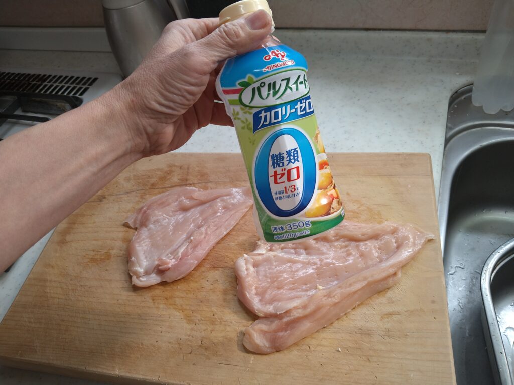 胸肉1枚200g~300gに対して、砂糖小さじ1(保水効果と肉質を柔らかくする効果)